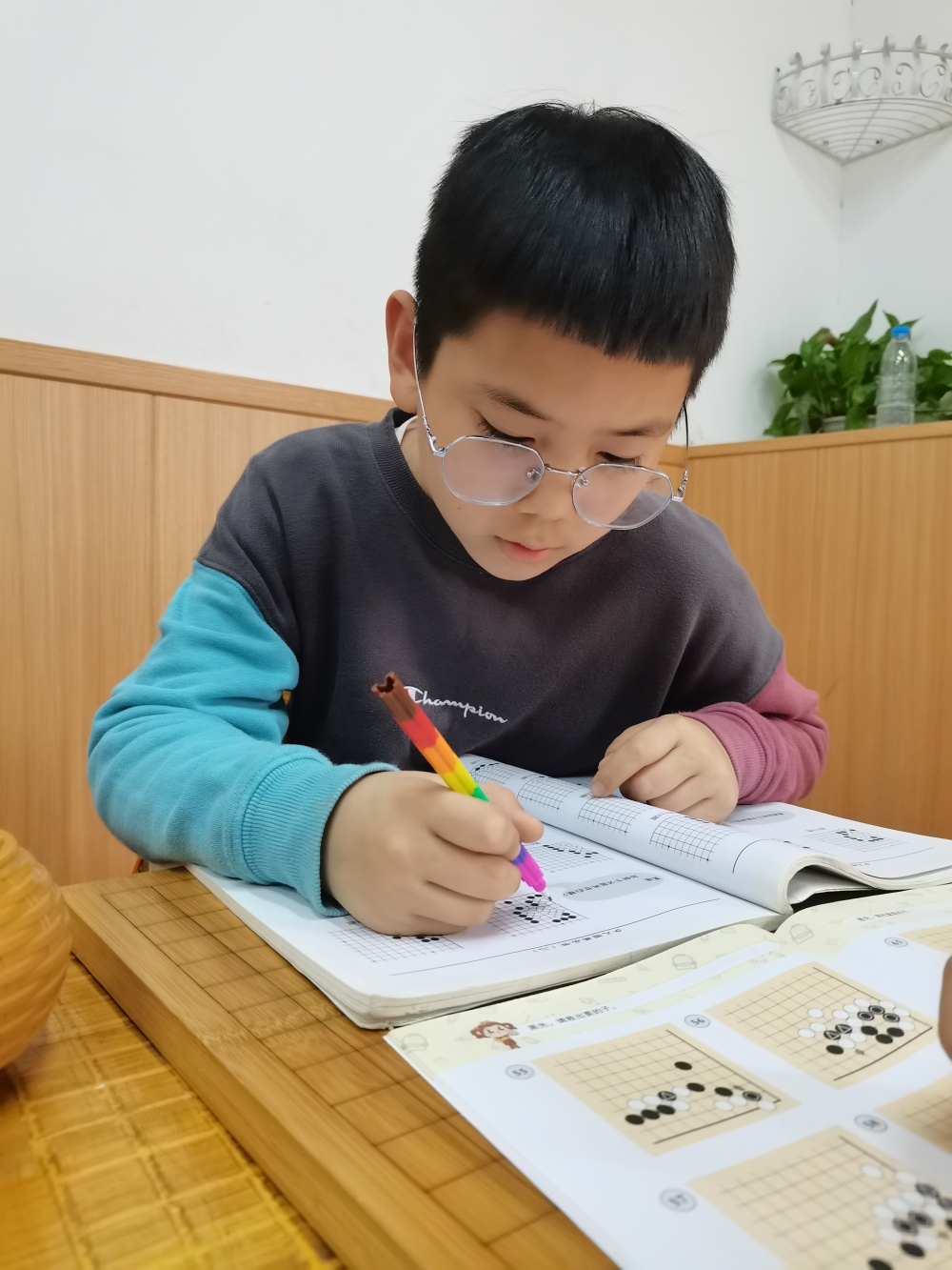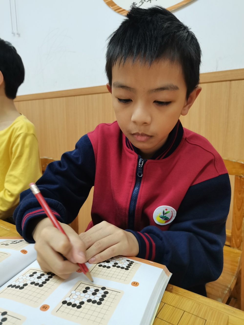 認(rèn)真做圍棋作業(yè)的沖段少年。